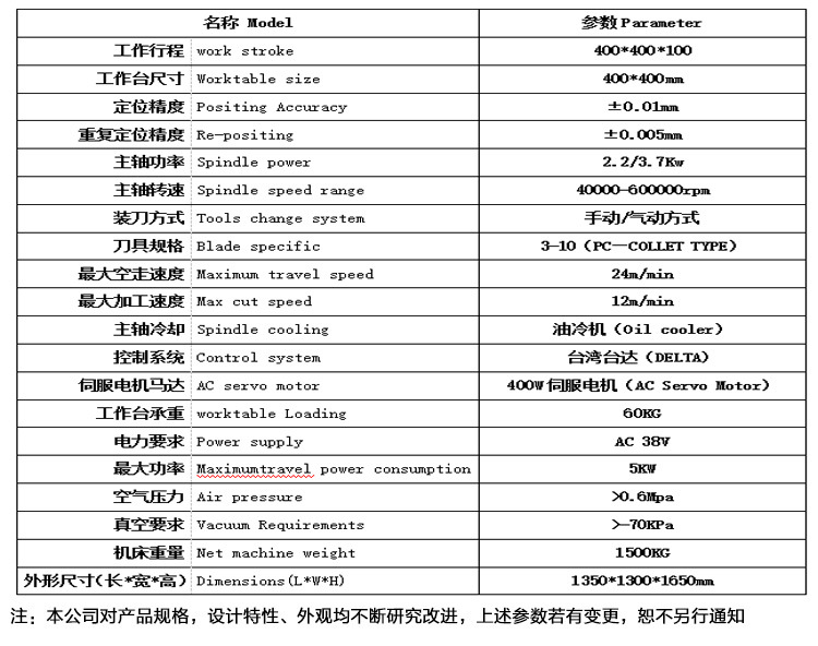 • 工作行程: 400*400*100